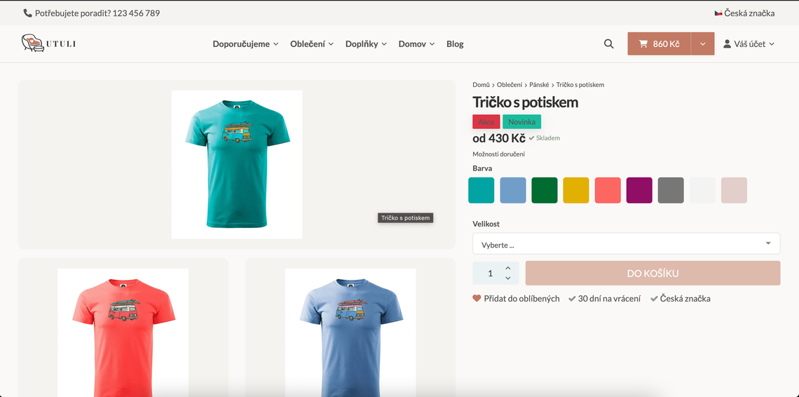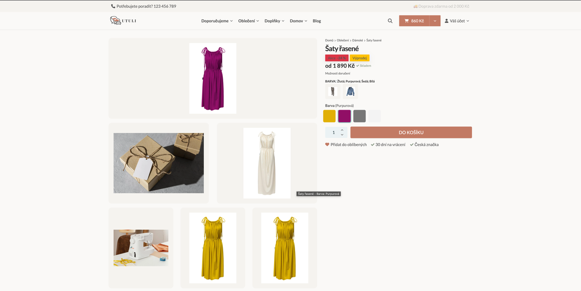 Na rozdíl od standardního zobrazení lze fotografie uspořádat například do větší dominantní hlavní fotky s náhledy pod ní, vedle ní nebo v mřížce. Řešení je vhodné zejména pro značky, které chtějí klást důraz na vizuální prezentaci produktu, detailní záběry nebo lifestyle fotografie.
